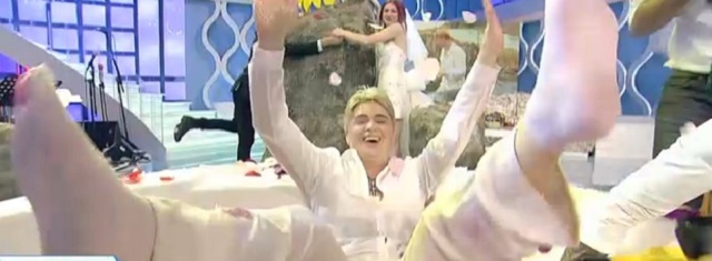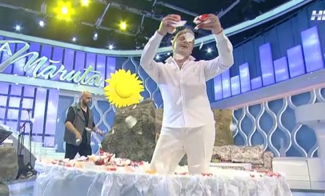 Invitat într-o emisiune de la ProTV, artistul de muzică populară a recreat videoclipul melodiei care i-a adus celebritate, cu menţiune că în loc de apa unui râu, cântăreţul a folosit un jacuzzi. Bineînţeles, petalele de trandafir au fost nelipsite.