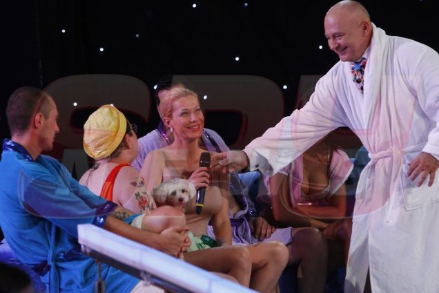 Spre amuzamentul tuturor, cei doi au încurcat micuţele patrupede între ele, astfel încât căţelul Simonei Sensual, Biju a ajuns la Bianca Drăguşanu şi vicecersa.