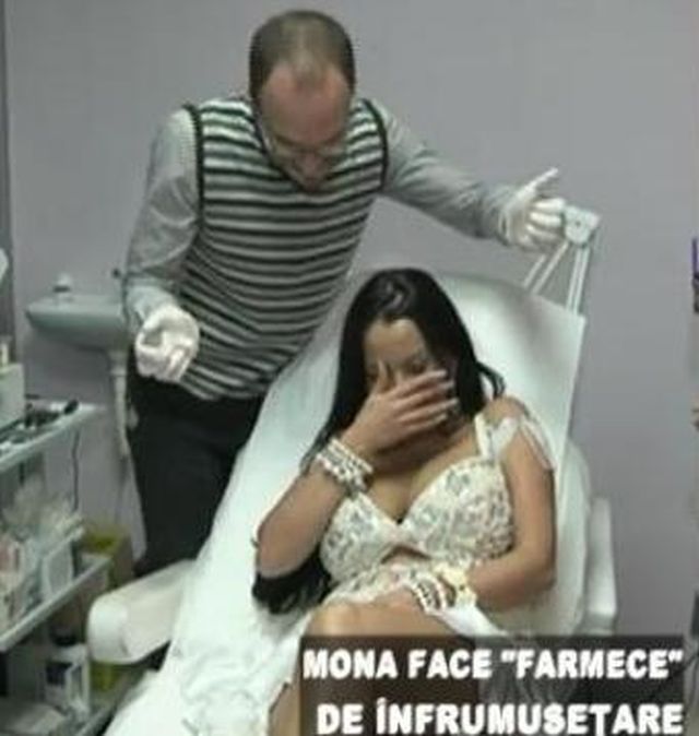 "Sunt amorţită, nu prea pot să vorbesc. Am venit să mă fac frumoasă şi după să merg să-mi găsesc prinţul pe care mi-l doresc", a declarat Mona în timp ce se afla pe patul medicului.