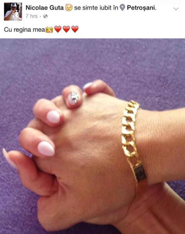 "Uitați, lume bună, ce cadou i-a făcut el lui Alberto. În loc să fim o familie unită, uitați-vă ce suferă de el nebunul", le-a spus Narcisa Guţă prietenilor ei virtuali cărora le-a postat o captură cu imaginea postată de Nicolae Guţă, care se află împreună cu noua lui iubită la Petroşani.