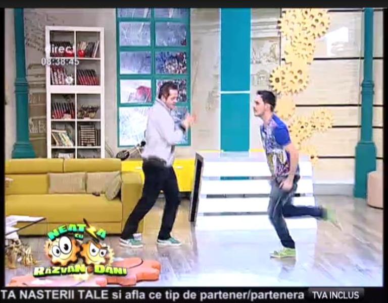 În această dimineaţă, Răzvan a vrut să demonstreze că nu e doar un bun moderator, ci şi un bun dansator. În lipsa colegului său, Dani, moderatorul nu a stat pe gânduri şi s-a dezlănţuit.