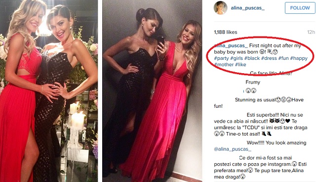 "Prima noapte afară după ce am născut. Petrecere. Fete. Negru. Rochie. Distracţie. Fericite. Mamă. Like", este mesajul care însoţeşte imaginile care fac cât o mie de cuvinte.