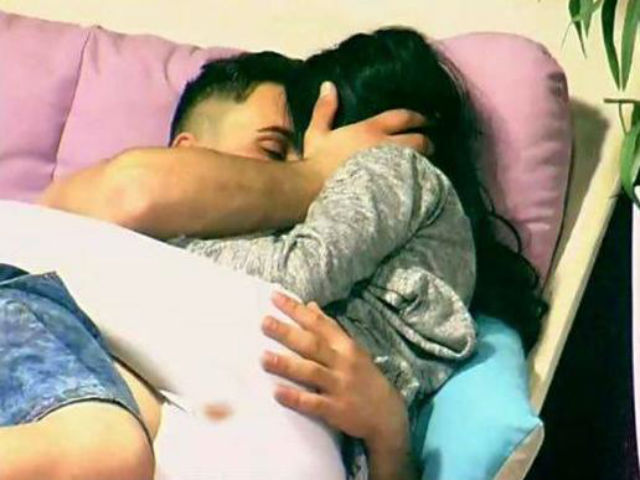 Pe internet circulă o imagine în care bruneta apare în braţele lui Ionuţ, cu care se sărută cu foc. Nimic neobişnuit până aici, dar perechea de pantaloni de culoare albă pe care o purta lăsa la vedere un mic detaliu ruşinos.