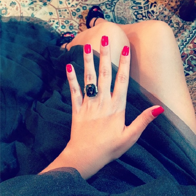 Andreea Mantea s-a pozat în miez de noapte cu mâna stângă pe genunchi, lăsând la vedere degetul inelar pe care poartă un inel cu piatră mare, neagră. Fosta "burlăciţă" este îmbrăcată într-o ţinută în care predomină culoarea negru, având o rochie din voal, scurtă, în stil "rock". "Înapoi la negru", a scris Andreea Mantea, pe contul de socializare, parafrazând o melodie de-ale lui Amy Winehouse. Unii dintre fani au crezut că vedeta a primit inelul de logodnă de la iubitul ei, Cristi, însă alţii au comentat că piatra este cam mare pentru ca bijuteria să prevestească o viitoare nuntă între cei doi.