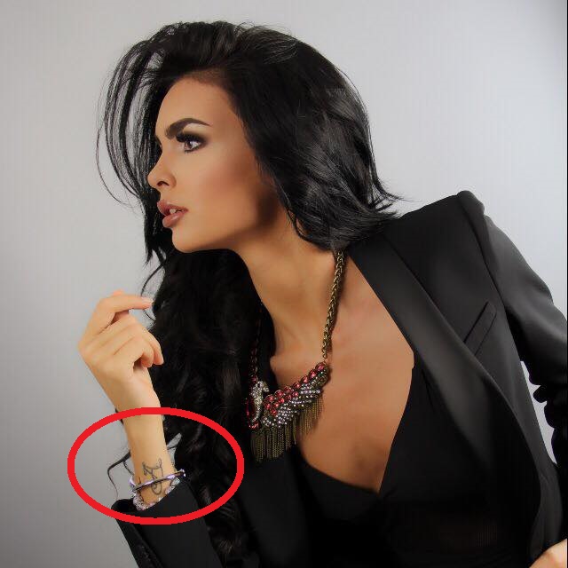 Aşa că încă îşi afişează cu mândrie tatuajul de pe antebraţ, care reprezintă numele fostului iubit, Adrian, patron al unui club de fiţe din Capitală.