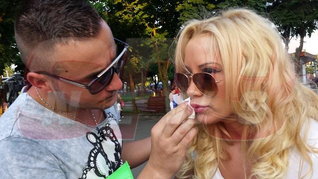 Apoi, Răzvan i-a satisfăcut imediat pofta de dulce a Simonei și i-a cumpărat câteva gogoșele cu ciocolată pe care i le-a băgat, cu mare grijă, personal, în gură blondei, ștergând-o, din nou, pe botic...