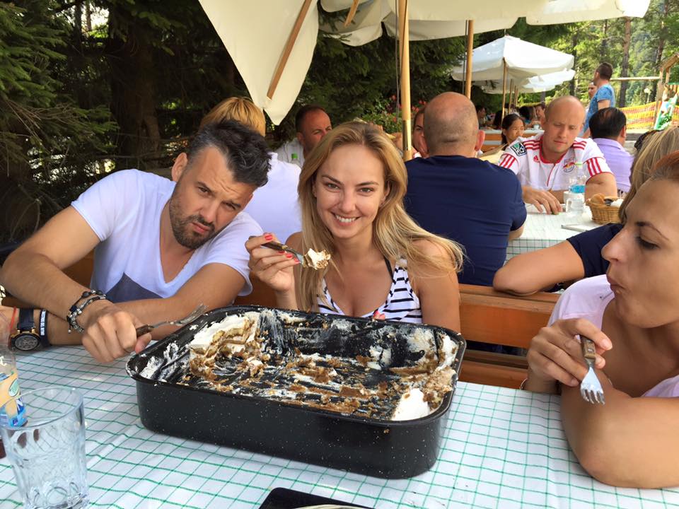 Din care, să fim sinceri, nu a rămas prea mult, pentru că cei doi, ajutați d eîncă ko amică, au devorat-o. Culmea, Roxana părea să fie cea mai încântată de ceea ce avea în față, semn că, pentru o zi, vedeta a renunțat la dieta care are grijă de silueta perfectă pe care o afișează și și-a făcut de cap.