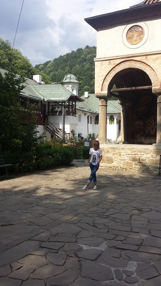 "Un colţ de rai", a scris Ana Maria Mocanu alături de fotografia cu ea din faţa mănăstirii.