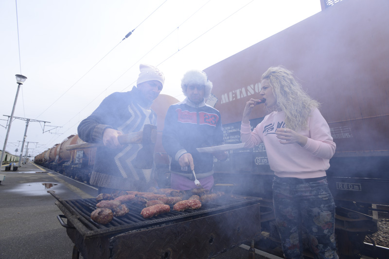 Pe peronul din Gara de Nord, membrii SRC au încins un grătar, pe care au fript mici. "Ne bucurăm că după aproape zece ani de când am intrat în Uniunea Europeană, micii noştri au fost şi ei acceptaţi. Aşa că prin această filmare de promo – simbolică aş putea spune- aducem un omagiu mititeilor româneşti şi plecăm spre marea Europă cu micii româneşti", spune, cu umor, Toni Grecu.