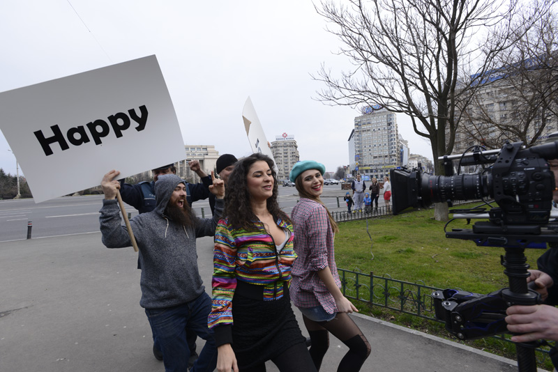 "Vremea a ţinut cu noi şi după două săptămâni de ploaie încontinuu a ieşit soarele în timpul filmărilor noastre. E semn că va fi un sezon cu adevărat <happy> . Şi atunci când eşti cu adevărat fericit chiar îţi vine să dansezi pe stradă aşa cum am făcut noi pentru filmările <Happy show>", spune Jojo.