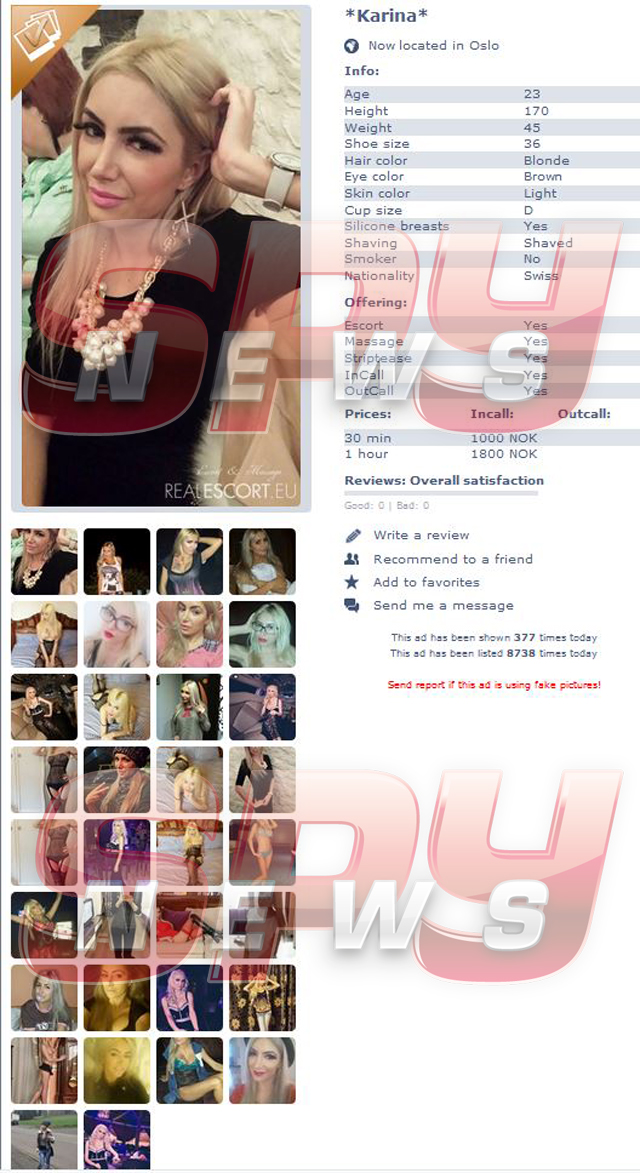 Mai exact, vedeta filmelor pentru adulți s-a și înscris deja pe un site de profil de acolo, iar serviciile sale sunt, explicit, sexuale, sumele pentru care își încântă vizitatorii, fiind de-a dreptul piperate. Astfel, pentru 30 de minute petrecute în compania ei, Sexy-brăileanca încasează nu mai puțin de 100 de euro, iar o oră alături de ea costă 200 de euro.