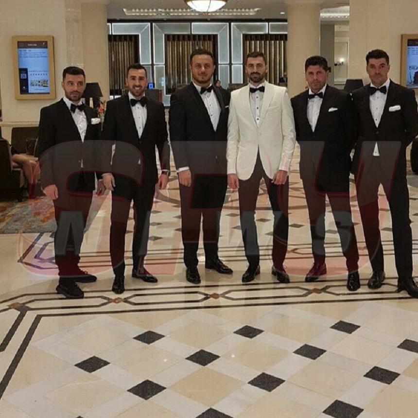 În imaginile care au ajuns în posesia reporterilor Spynews.ro se vede clar că mirele este cuprins de emoţie. Îmbrăcat într-un sacou alb, Adrian Ropotan s-a pozat alături de cavalerii de onoare, printre care se numără şi fostul fotbalist Dacian Varga. Evident, din fotografie nu lipseşte socrul mic, celebrul Stelian Ogică. De remarcat este şi ţinuta aleasă de cel supranumit „spaima loteriei”. Ogică a optat pentru un costum negru, la care a asortat o câmaşă albă şi un papion tot de culoare neagră. Din cauza posturii în care se află, tatăl superbei Raluca abia şi-a stăpânit emoţiile.