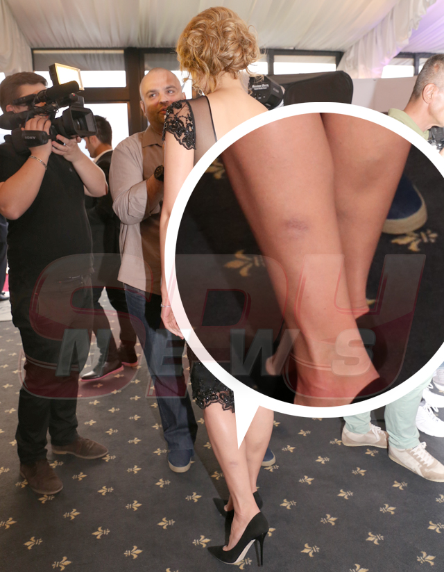 La cei 33 de ani, Iulia Vântur are o siluetă demnă de invidiat. Deşi atrage privirile oricărui bărbat atunci când îşi face apariţia, blonda a fost prinsă pe picior greşit la ultimul eveniment monden la care a luat parte. Îmbrăcată într-o rochie neagră cât se poate de sexy cu un decoleteu foarte generos, Iulia a uitat cu desăvârşire să-şi mascheze vânătăile de pe picioare.