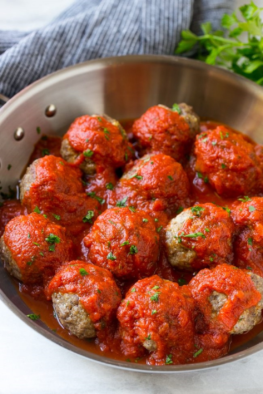 Luați aproximativ două linguri de amestec de carne și rotiți-l în formă de minge, iar apoi apăsați un cub de brânză în interiorul bilei de carne. Aşezaţi chifteluţa pe o tava și repetaţi cu restul de carne și brânză. Pulverizaţi fiecare mingiuţă de carne cu spray-ul de gătit, iar apoi introduceţi tava în cuptor. Se lasă la copt aproximativ zece minute. După ce sunt gata, aşezaţi chifteluţele pe o farfurie şi adăugaţi sosul de marinadă şi pătrunjelul. Se serveşte imediat.