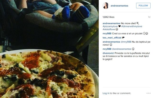 Andreea Mantea, care tocmai a împlinit 29 de ani, pe 20 septembrie, s-a săturat de gătit "mâncare sănătoasă" şi şi-a luat o pizza foarte apetisantă. Bruneta n-a mai ţinut cont de calorii şi şi-a spus acest "păcat" pe Instagram.