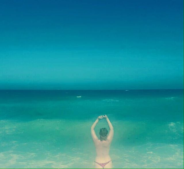 Aflată în vacanţă, la mare, în Vama Veche, soţia lui Viorel Lis nu a ezitat să renunţe la haine, probabil inspirată şi de atmosfera boemă a staţiunii. Blonda a renunţat la sutien şi a rămas doar în bikini. Fotografia au fost postată imediat pe contul ei de Facebook.