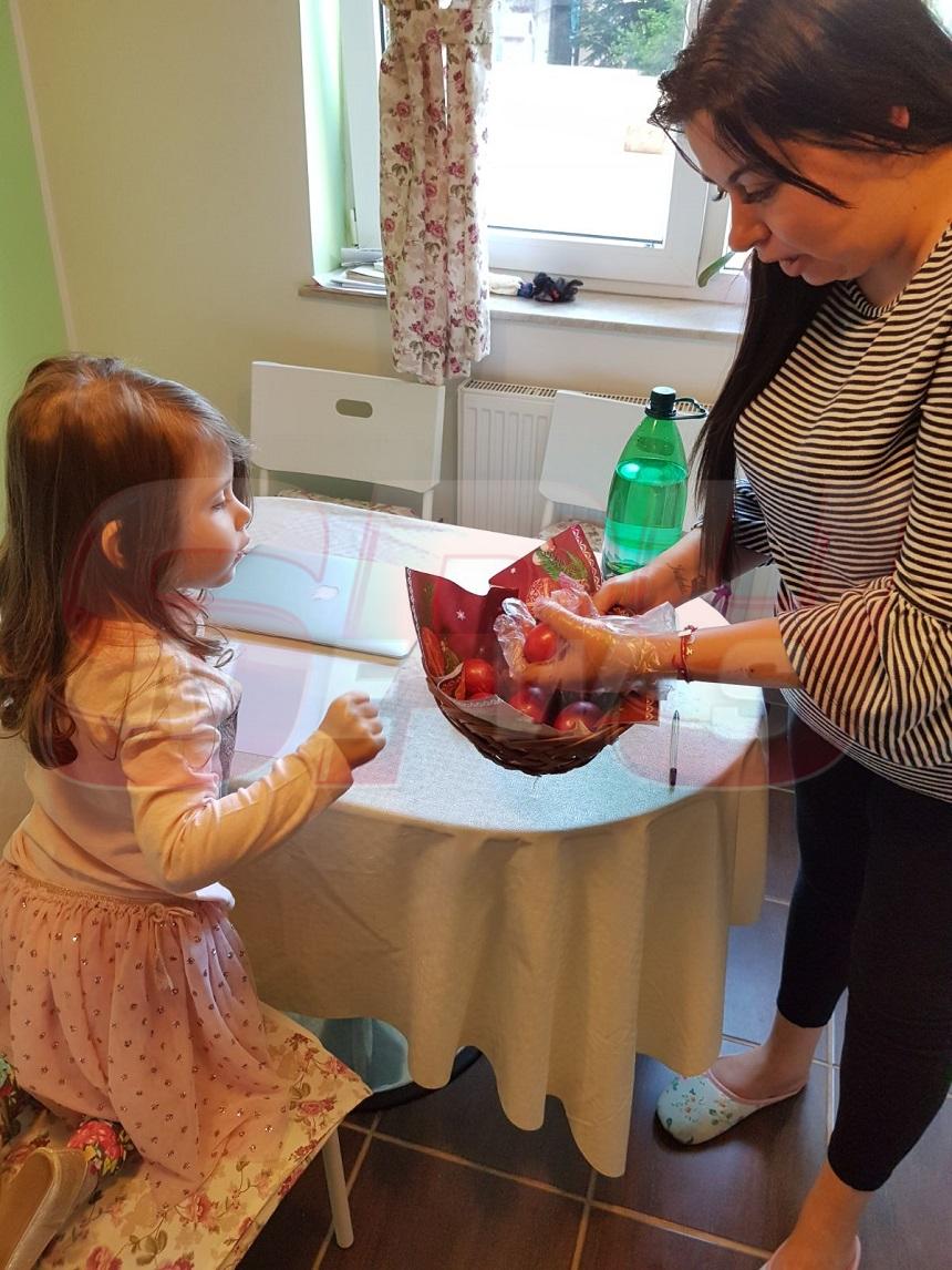„Maria este un ajutor de nădejde în bucătărie! M-a ajutat să pun abţibilduri pe ouă. A fost foarte încântată şi bucuroasă. Mi-a demonstrat că are experienţă la acest capitol, pentru că a vopsit ouă la grădiniţă. După ce am terminat, voia să le spargem. I-am explicat că o să le ciocnim după ce luăm lumină”, ne-a declarat Oana Roman.