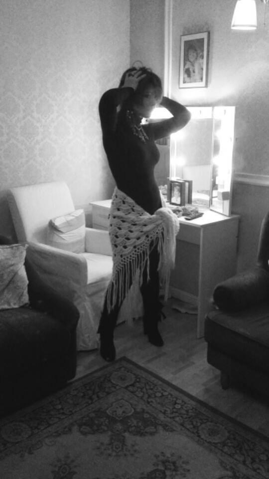 De curând, Oana Sîrbu a postat pe o reţea de socializare mai multe fotografii în care apare îmbrăcată într-o pereche de pantaloni negri şi un pulover de aceeaşi culoare, iar în mijlocul mijlocului are legată o eşarfă care-i evidenţiază talia de viespe.