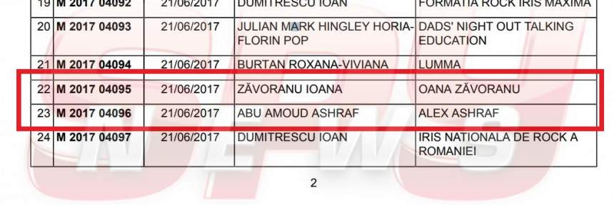 Pe numele lor reale Ioana Zăvoranu şi Ashraf Abu Amoud, cei doi au solicitat, în mare secret, în luna iunie a acestui an, declararea numelor lor ca mărci înregistrate. Solicitările au fost depuse cu numere consecutive la Oficiul de Stat pentru Invenţii şi Mărci, iar odată cu eliberarea certificatului "Oana Zăvoranu" şi "Alex Ashraf" vor avea drepturi depline asupra acestor "mărci".