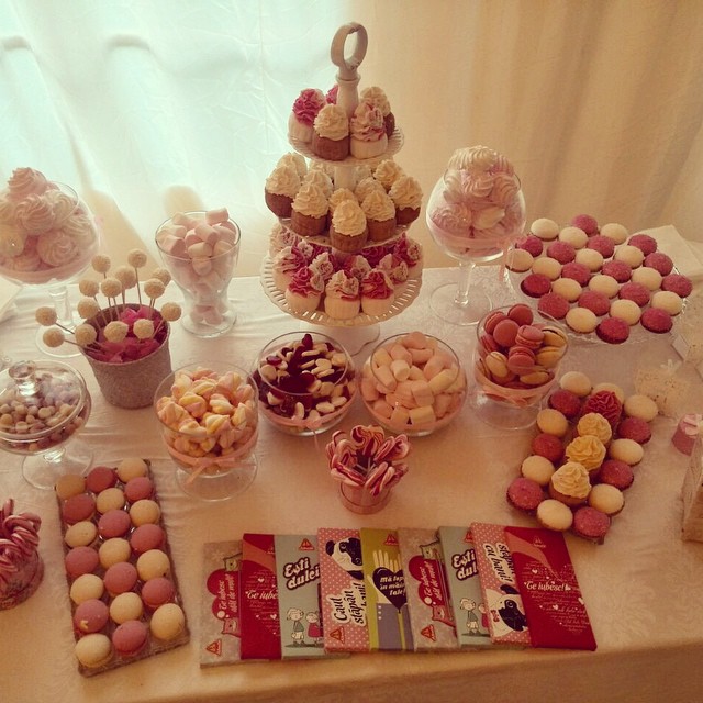 Elena Gheorghe s-a răsfăţat cu o mulţime de dulciuri, de toate formele şi culorile: multe macarons, brioşe cu frişcă şi marzipan, acadele cu nucă de cocos, acadele alb-roşii, bezele şi tablete de ciocolată, încât camera sa a devenit un adevărat candy-bar. Toate sunt aranjate elegant în boluri speciale, astfel că ocupă o masă întreagă. Elena a împărtăşit surpriza cu prietenii şi fanii de pe contul de Facebook înainte să guste din ele.Toţi i-au mărturisit că salivează când privesc asemenea bunătăţi.