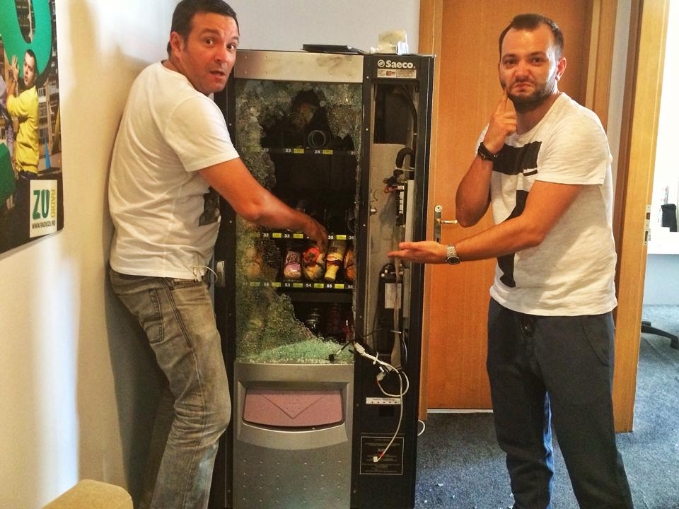 Imagine de groază pentru prezentatorii Radio ZU! În această dimineaţă, Buzdu şi Morar au fost şocaţi şi totodată amuzaţi, în momentul în care au observat că automatul din incinta Radio ZU a fost spart şi jefuit!