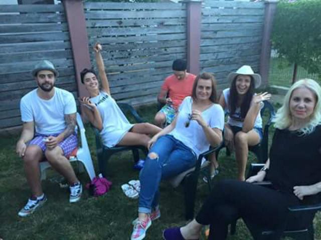 Iubita lui Speak a renunţat şi ea la machiaj pentru ieşirea cu prietenii. Îmbrăcată lejer, Adelina nu mai pare bomba sexy după care orice bărbat capul întoarce capul.