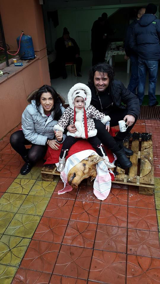 Chiar dacă are doar doi ani şi patru luni, Maria nu sa speriat de animal, nici măcar atunci când l-a văzut masacrat. Micuţa a asistat alături de tatăl şi mama ei la întreaga operaţiune, iar la final, au cinstit întregul moment cu o fotografie memorabilă.