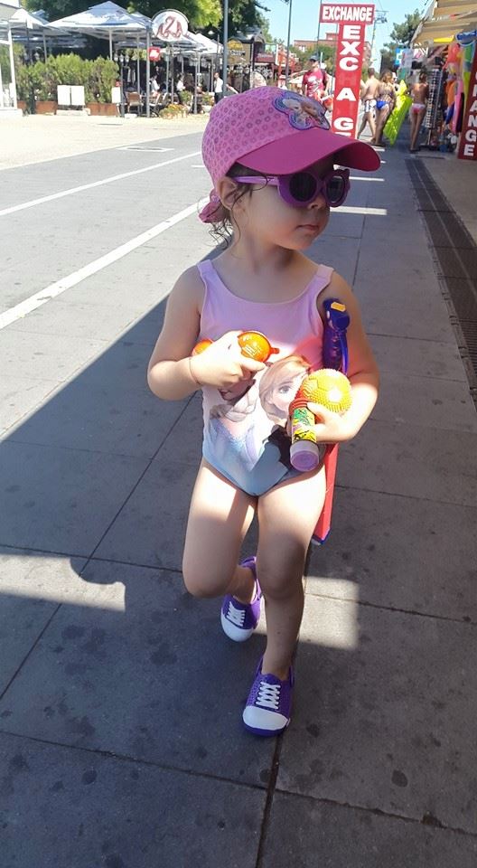 Micuţa Maria, pe care artistul o iubeşte necondiţionat, s-a echipat cu un costum de bie foarte simpatic, jucării din dotare, dar şi ochelari de soare. Evident, şapca nu putea lipsi, mai ales pe această vreme.
