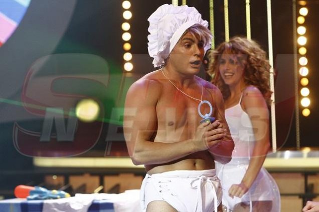 “Îmbrăcat” doar cu un pampers și cu tetina atârnată la gât, Pepe își va face apariția într-un cărucior împins de patru „mămici” și va încerca să interpreteze cât poate el de bine piesa “Dur dur d’etre Bebe”.