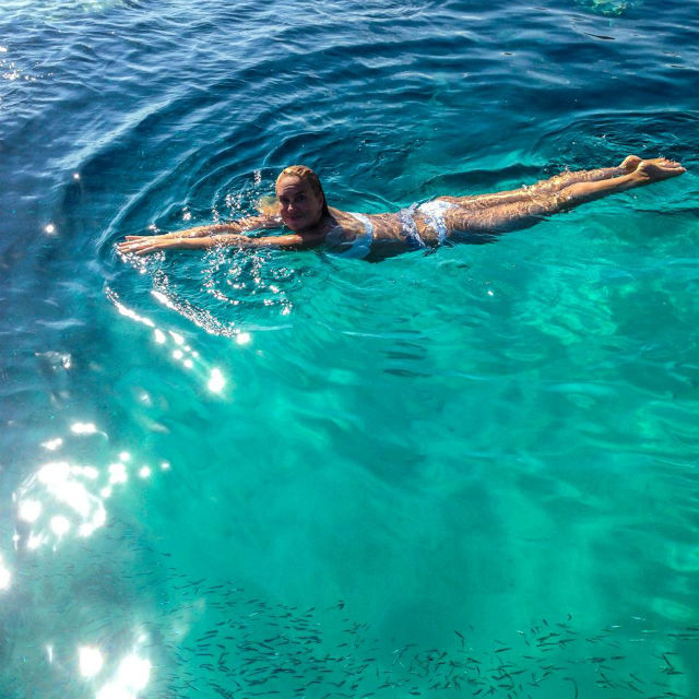 Vica Blochina a pus în practică ceea ce a învăţat la emisiunea "Splash! Vedete la apă" şi a înotat de dimineaţă până seara. "Soare şi distracţie. Sunt îndrăgostită", a scris Vica, pe contul de socializare, referindu-se la fiul său.