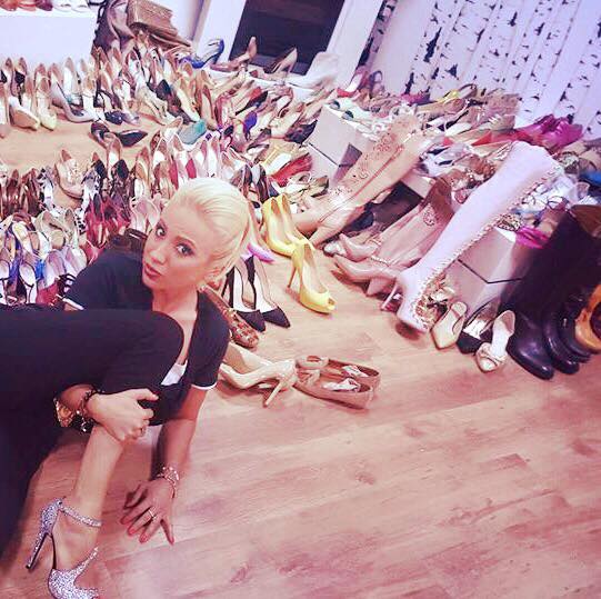 Vedeta de televiziune a probat mai multe perechi, s-a fotografiat printre numeroasele perechi de pantofi, iar entuziasmul s-a putut citi pe chipul ei.