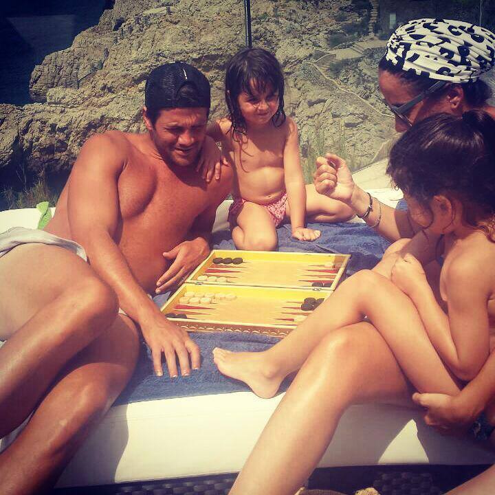 Portret de familie în vacanţă! Cristi Chivu şi-a provocat soţia şi cele două fetiţe la un joc de table