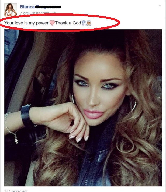 Din ce în ce mai des, pe contul ei de socializare, Bianca Drăgușanu face referiri la cele sfinte, notând, cel puțin o dată pe zi, că este iubită de Dumnezeu sau că se simte binecuvântată și iubită de Cel de Sus. Iar motivele pentru care face acest lucru, ne-a dezvăluit o amică apropiată de-a vedetei, sunt legate de relația pe care o are cu Victor.