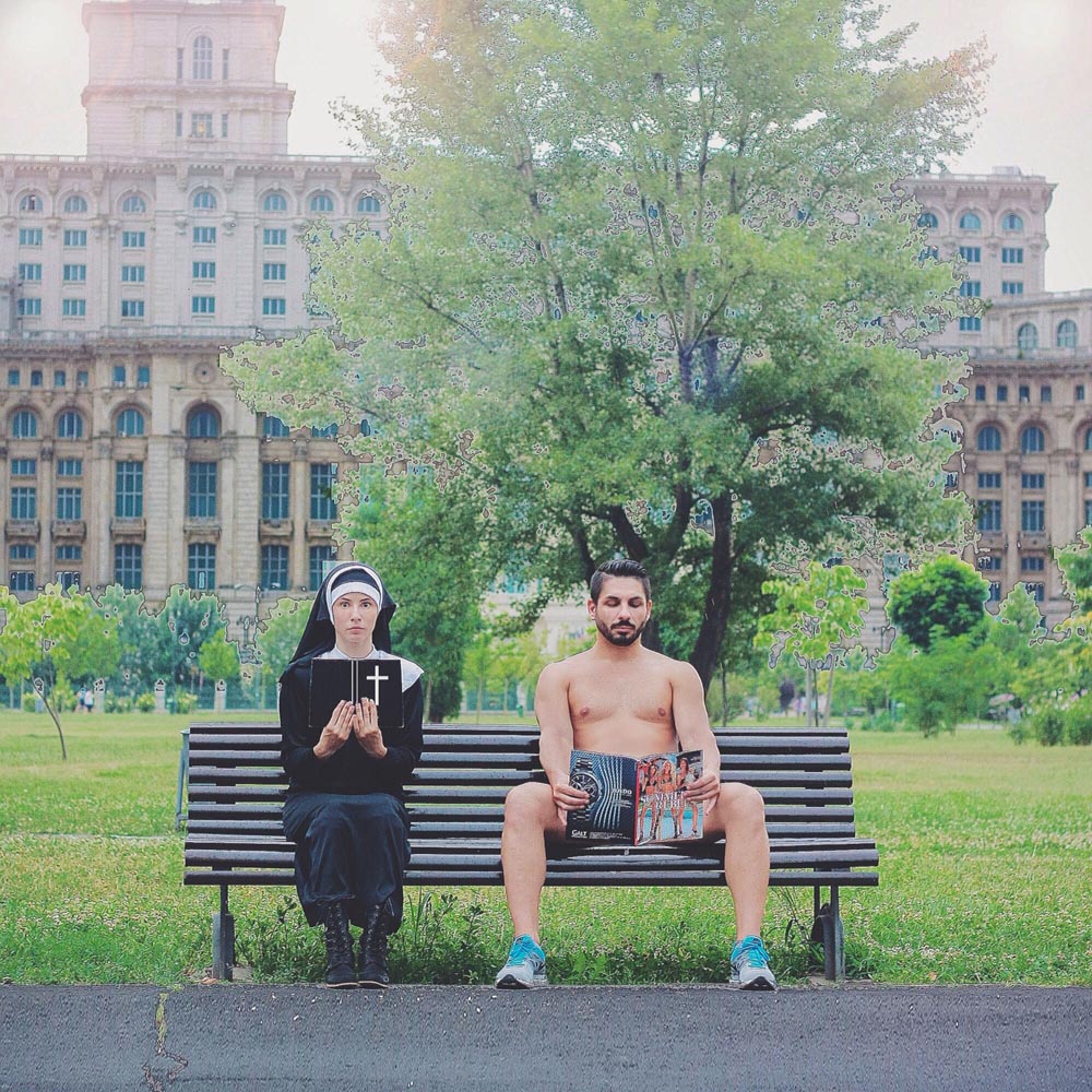 POZA care va stârni o mulţime de CONTROVERSE! Marius Nedelcu, ex-Akcent, s-a fotografiat GOL-PUŞCĂ lângă o călugăriţă