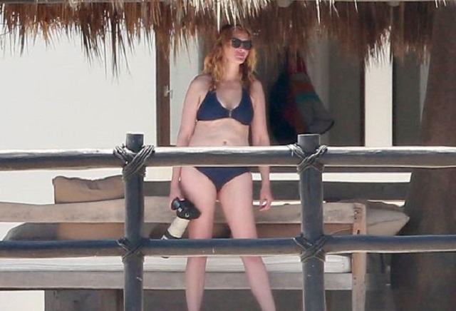 Actriţa, în vârstă de numai 47 de ani, s-a îngrăşat, iar silueta, altă dată silfidă, a dispărut peste noapte. Vedeta şi-a etalat trupul plin de celulită şi netonifiat într-un costum de baie negru, din două piese.