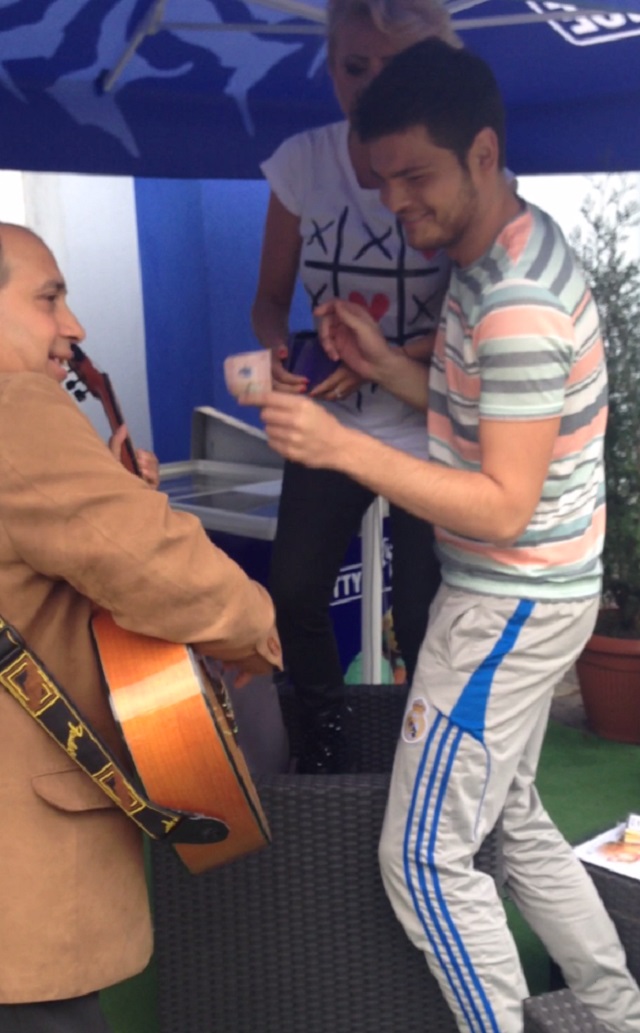 Gigel Frone a cântat cât la ţinut glasul pentru Rocsana Marcu şi Răzvan Botezatu. Cei doi au dansat, s-au distrat şi i-au dat bani lui Gigel, mai ceva ca la lăutari.