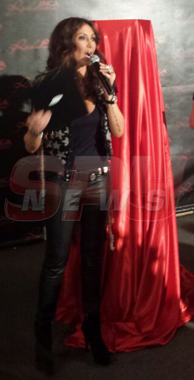 Vedeta TV a renunţat la rochiile elegante în favoarea unei ţinute lejere. A purtat o pereche de pantaloni strâmţi, din piele, un tricou negru, decoltat, şi o vestă neagră cu steluţe albe. Mihaela a completat ţinuta cu o pereche de botine cu toc înalt, tot negre.