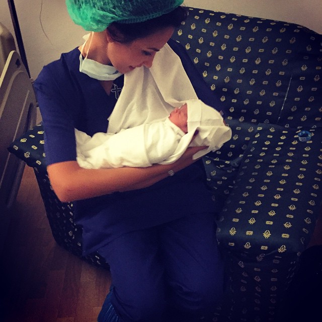Fotomodelul a ţinut să împărtăşească bucuria resimţită şi cu prietenii ei virtuali cărora le-a arătat o imagine cu bebeluşul care a venit pe lume sâmbătă, la ora 12:50.