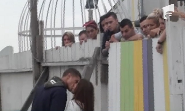 Cei doi s-au îmbrăţişat puternic şi s-au sărutat, într-una din cele mai romantice scene din câte s-au văzut, în această comeptiţie.