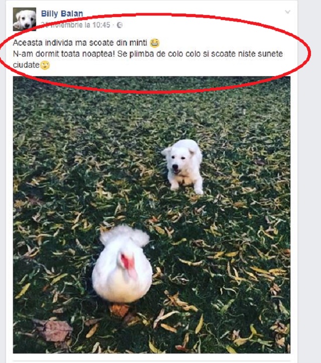 Zilele trecute, spre bucuria Andreei, bunica ei a venit să o viziteze și să petreacă puțin timp cu Ella, fetița vedetei. Și, după ea, a luat și o rață care, timp de câteva seri a petrecut timpul în curte, alături de Billy Bălan, simpaticul patruped al talentatei artiste, care, printre altele, s-a și ”plâns” pe pagina sa de socializare că este deranjat de zgomotele ”suspecte” ale zburătoarei.