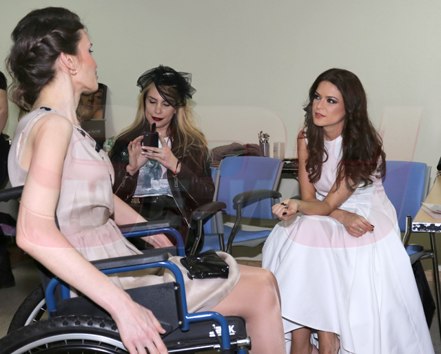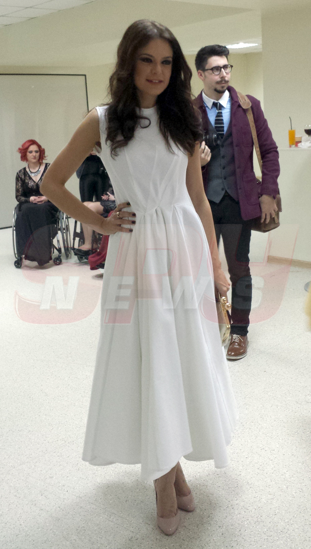 Ştirista a avut parte de o provocare inedită la un show de modă, unde a urcat pe podium într-o rochie albă, care îi punea în evidenţă talia.