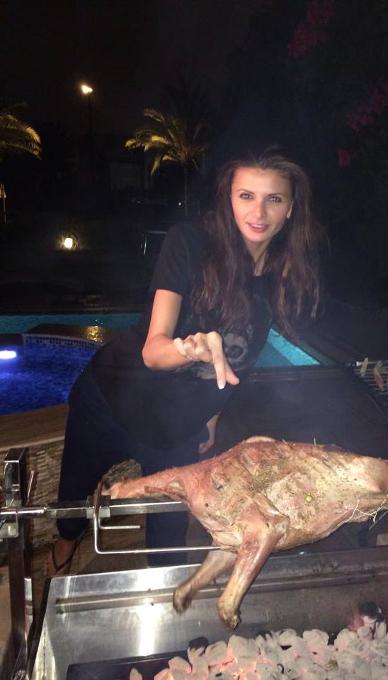 Modelul s-a pozat veselă nevoie-mare lângă un miel la proţap. În spatele ei se văd palmieri şi o piscină de fiţe, astfel că fanilor li s-a părut că întreaga imagine e de prost gust şi au criticat-o. "Uite mieluşelul şi uite şi-o capră lângă el", i-a scris un aşa-zis admirator.