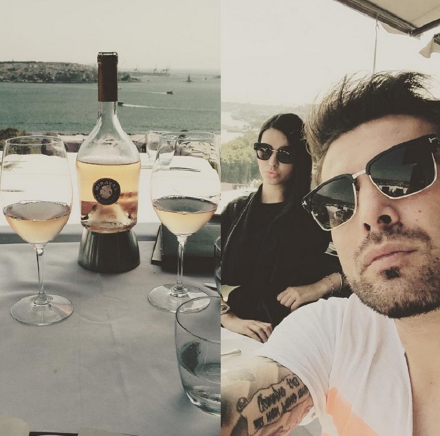 Fotbalistul a postat pe contul său de socializare, în urmă cu puţin timp, în care o fotografie, în care apare alături de iubita lui, Sandra Bachici. Adrian Mutu ia masa de prânz alături de ea, lângă o apă. Cei doi ciocnesc bineînţeles şi câte un pahar de vin.