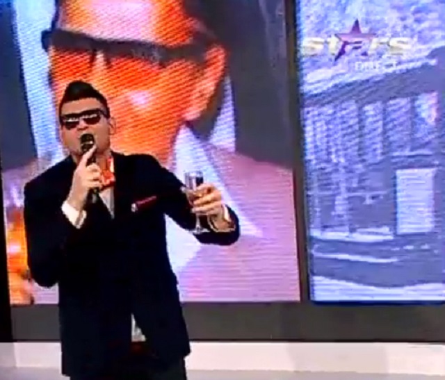 Îmbrăcat într-un costum negru, cu ochelari şi paharul de şampanie în mână, Bote a fost copia fidelă a unuia dintre cei mai îndrăgiţi cântăreţi.