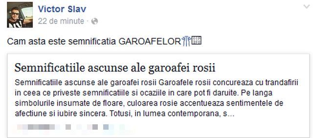 Victor Slav a vrut să le facă o surpriză doamnelor şi domnişoarelor şi să le ofere virtual un buchet de... garoafe. Prietenii virtuali l-au criticat dur, spunând că acestea sunt flori "pentru morţi".