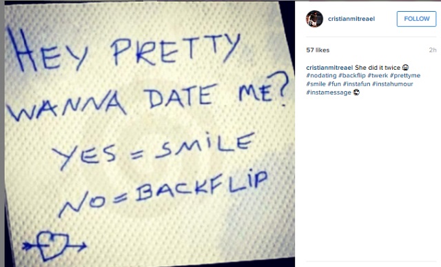 La scurt timp, Cristi Mitrea a reacţionat. La fel, pe pagina unui site de socializare. Atitudinea lui rămâne neschimbată. Distantă şi fără să aibă ceva în comun cu ceea ce Andreea Mantea a anunţat! Pe un şerveţel, Mitrea a scris ceea ce pare o invitaţie destinată unei...drăguţe.