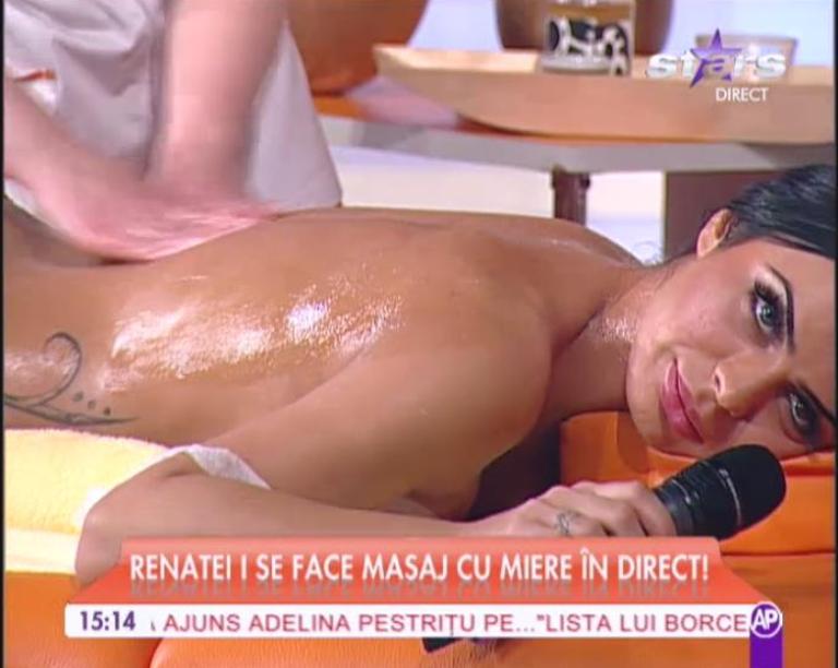 Cu siguranţă publicul masculin nu a ţinut cont de masaj, când a văzut-o pe Renata întinsă pe un pat şi fără sutien. Nu ştim dacă la fel de încântat a fost şi iubitul Renatei, Leo. Se ştie foarte bine că acesta este foarte gelos şi nu o scapă din ochi pe Renata.