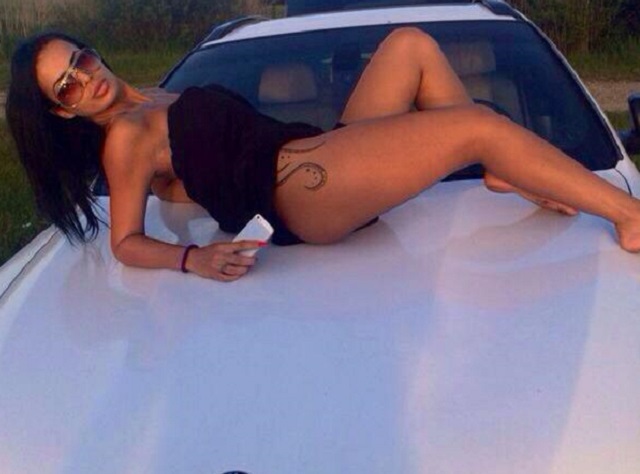 Asistenta TV a postat o poză pe contul de Facebook în care s-a urcat pe bolidul de lux şi stă într-o poziţie provocatoare. Renata poartă o rochiţă neagră şi le-a arătat posteriorul admiratorilor ei.