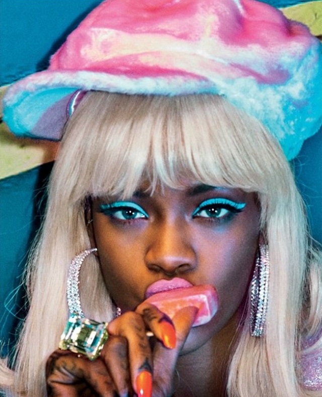 Mai mult, ipostazele senzuale, precum cea în care îşi ţine lipit de unul din sâni un pahar cu o băutură răcoritoare, dar şi cea în care se delectează cu o acadea, încing şi mai tare spiritele şi imaginaţia acelora care o privesc.