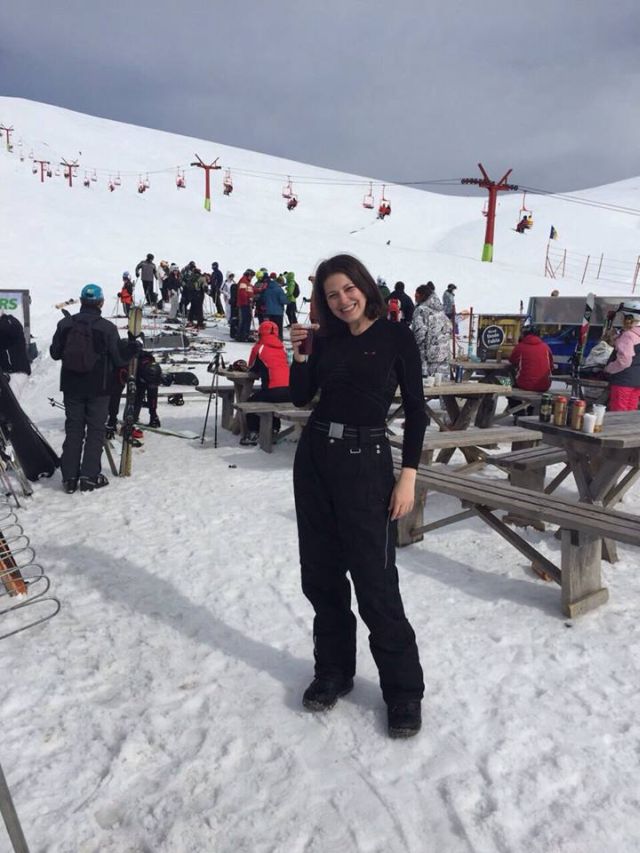 S-a bucurat din plin de zăpadă şi a testat sporturile de iarnă, momentele trăite făcând-o să radieze de fericire.